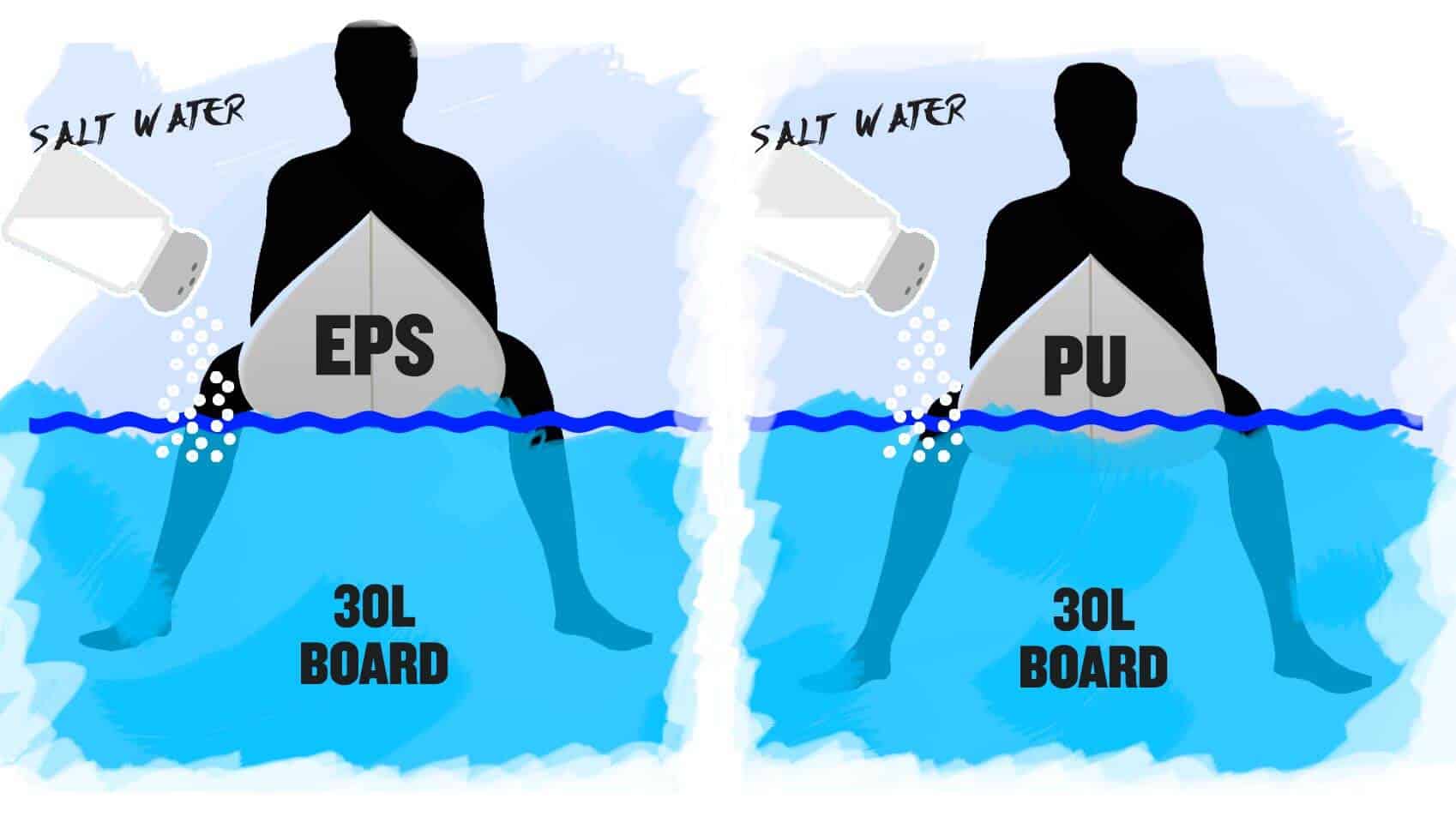 In the water, EPS boards feel lighter and more buoyant, which can be a blessing when paddling or catching waves. The weight difference is most noticeable in longboards, where the extra float makes a significant impact.
